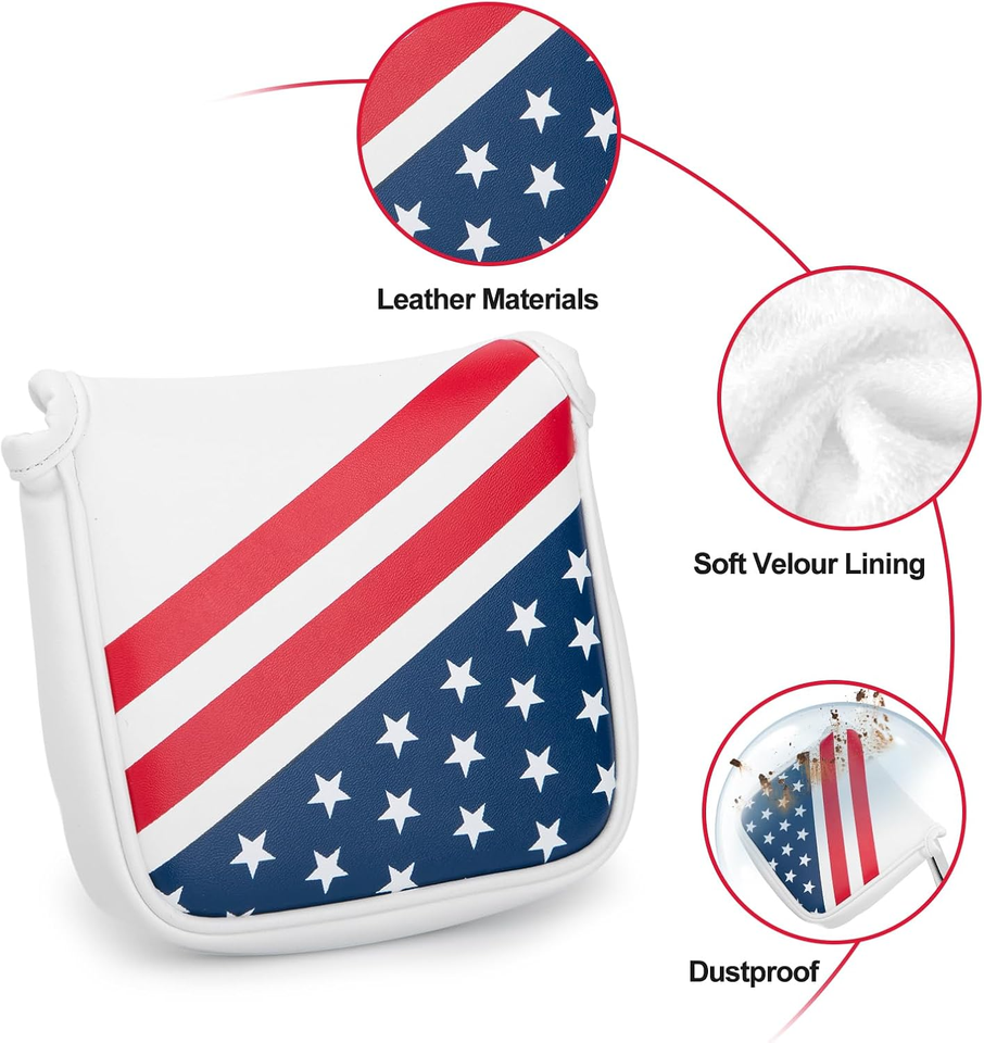 VN Wholesale Customized Logo Printing Flag Pattern Square Matte Waterproof PU Leather Material Magnet Closure Golf Putter