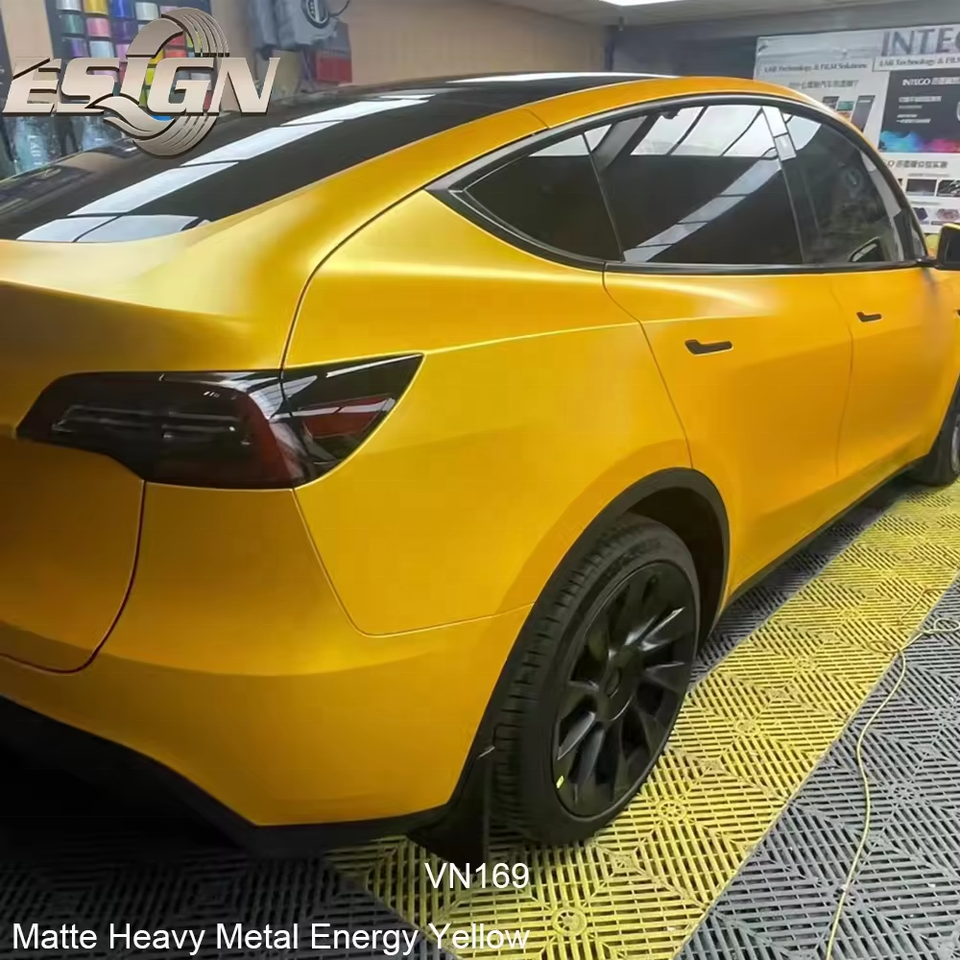 ESIGN VN169 Matte Heavy Metal Energy Yellow Car Wrapping Vinyl Sticker Self Healing Anti Scratch UV Proof Color Changing Film