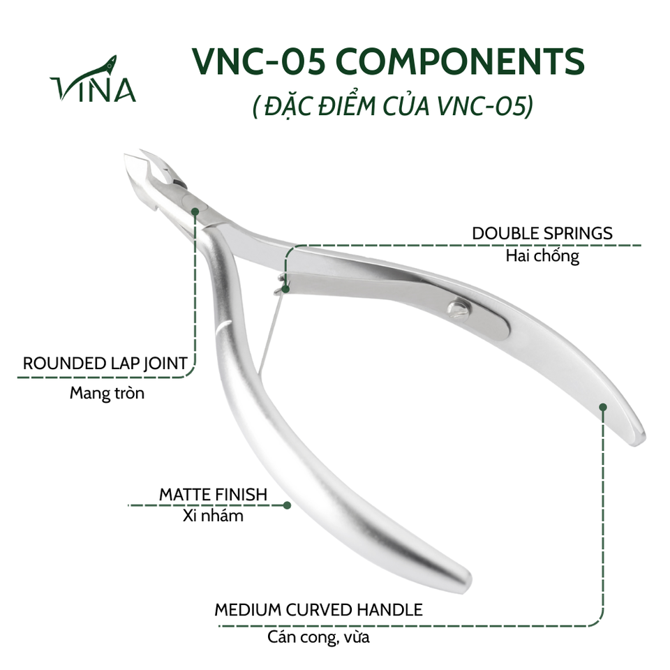 VNC-05 Vina Bevel Jaw Cuticle Nipper Stainless Steel Grey Finish Professional Durable for Salon Nail Services Finger & Toe Use