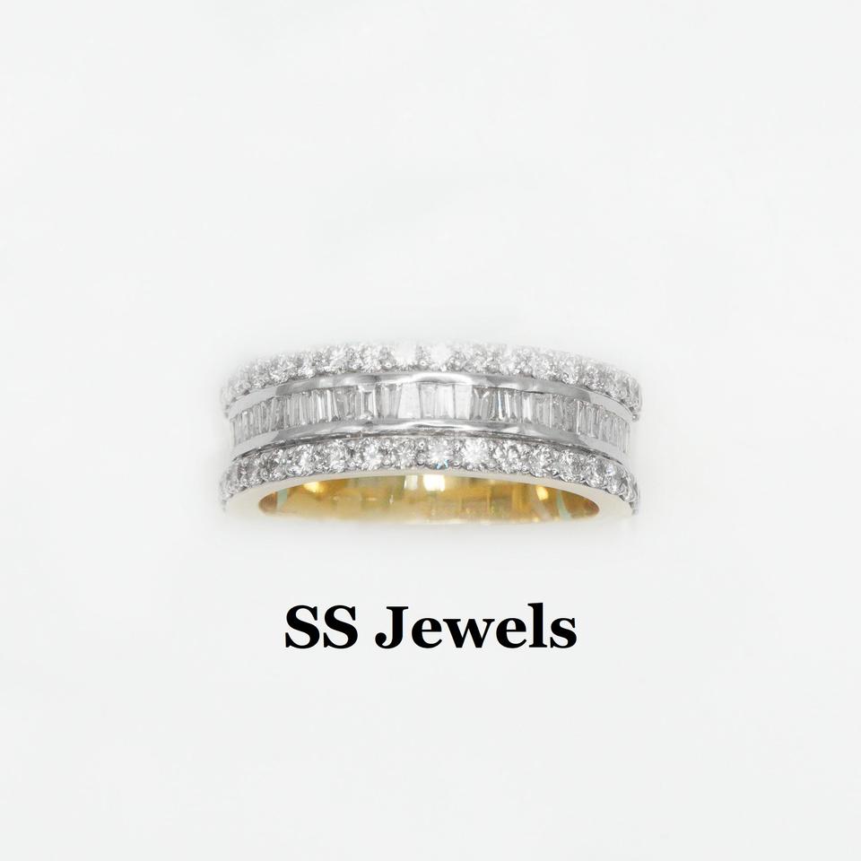 VVS Baguette Moissanite Diamond Ring 925 Silver Channel Setting Alternating Band Unisex Hip Hop Fashion Jewelry Iced Look