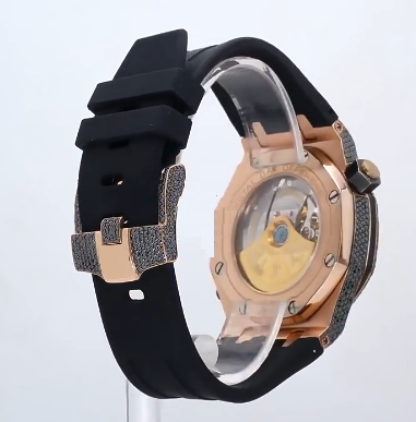 VVS Black & White Round Moissanite Diamond Men's Wrist Watch, Unique Rose Dial With Black Silicone Strap Bustdown Watch,