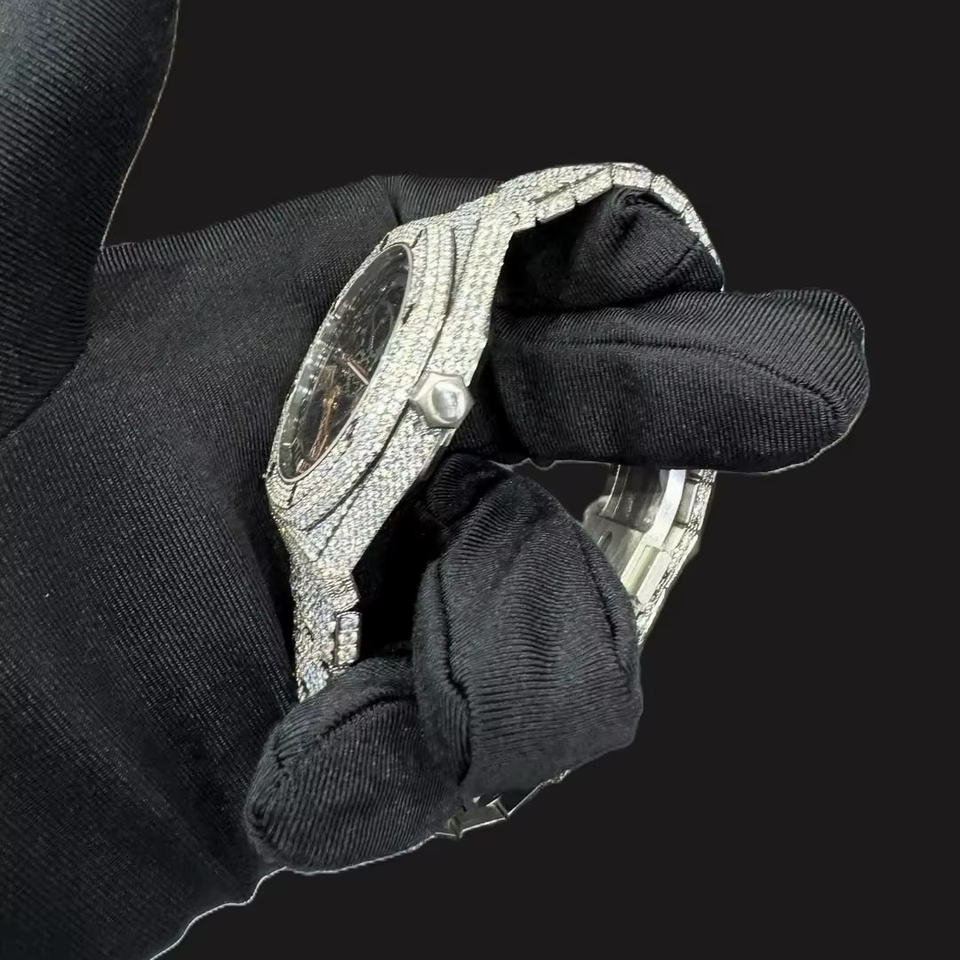 VVS Clarity Miyota Automatic Mechanical Fashion Wristwatch Pass Diamond Tester Custom Black Dial White Tone Moissanite Handmade