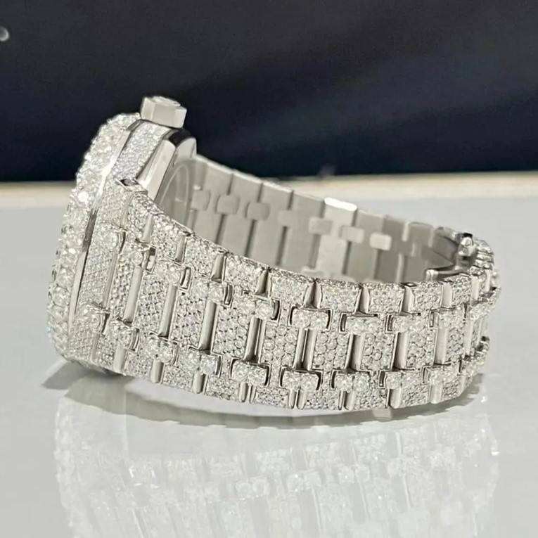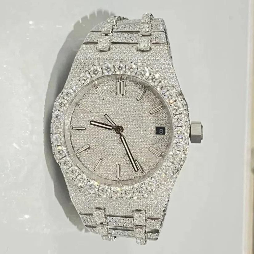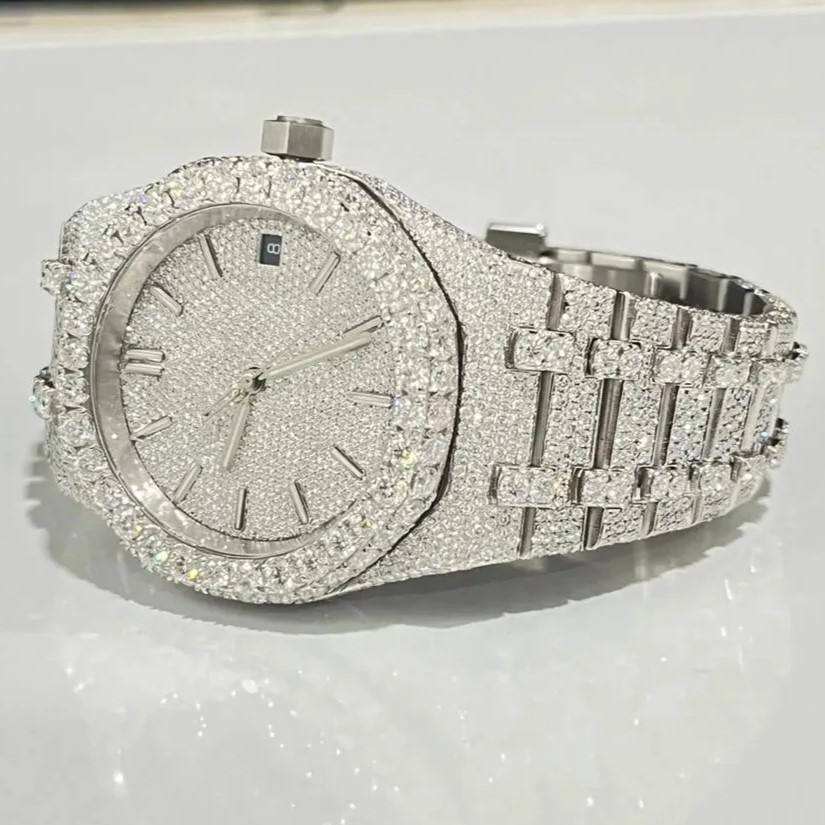 VVS High Quality Icedown VVS Moissanite diamond Automatic Mechanical Stainless Steel wrist Watch for Men Women