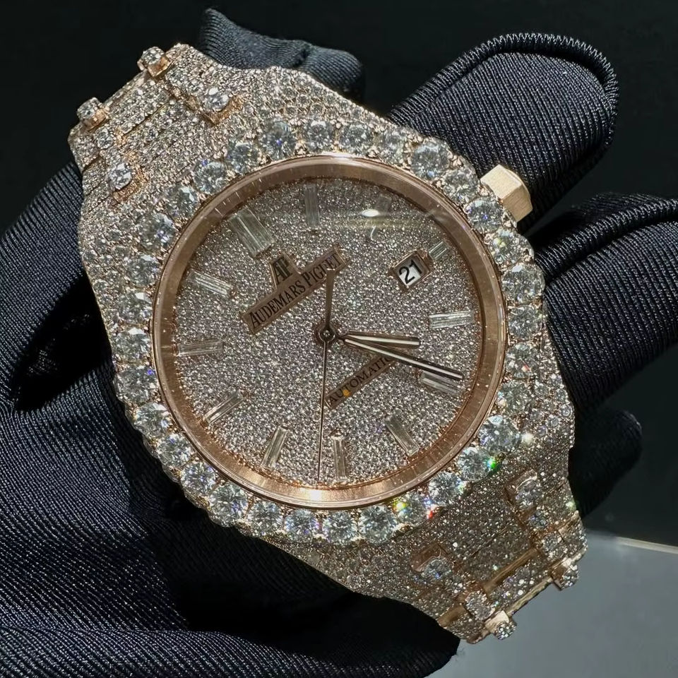 VVS Iced Moissanite Diamond Luxury Bustdown Hip Hop Watch for Men 41mm Automatic Movement Wrist Custom Stainless Steel Glass