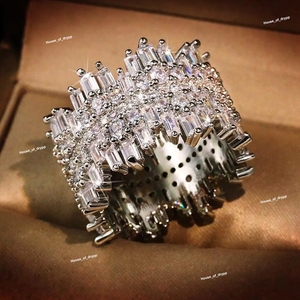 VVS Iced Out Baguette And Round Moissanite Stone Ring Silver Bold Hip Hop Statement Jewelry For Women