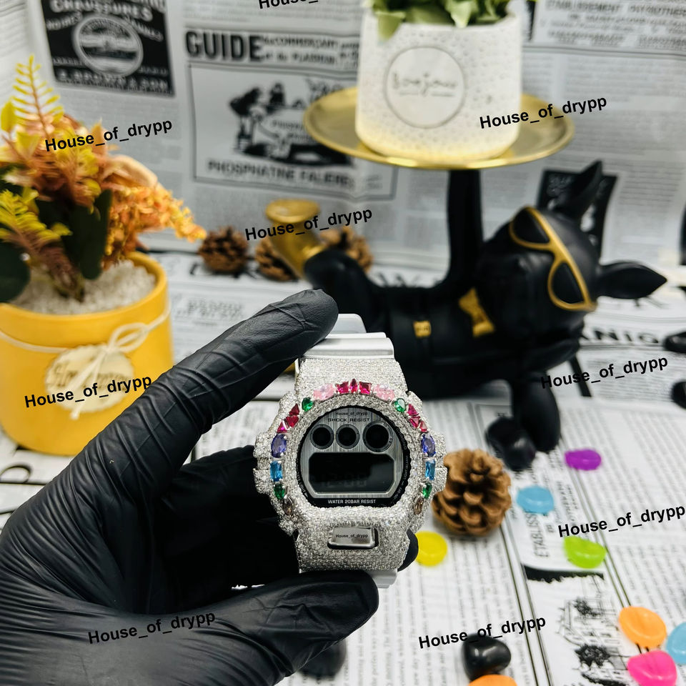 VVS Iced Out Digital Watch With Multicolor Moissanite Diamond Bezel Silver Dial Case And Bust Down Fashion Timepiece
