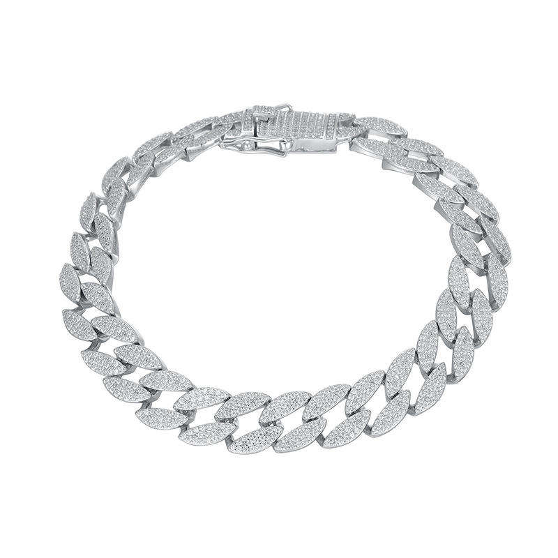 VVS Iced Out Moissanite Diamond Cuban Link for Bracelet Hip Hop Fine Jewelry Sterling Silver Plated Fashion Cuff Bracelets