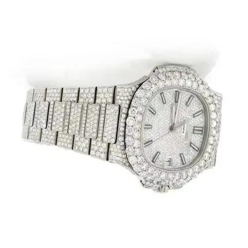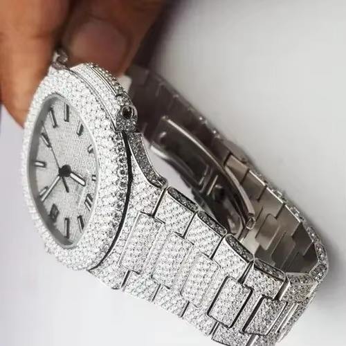 VVS Luxury Automatic Mechanical Watches for Men High Quality Black Bussdown Moissanite 22mm Band Width Quartz Iced Fashion Style