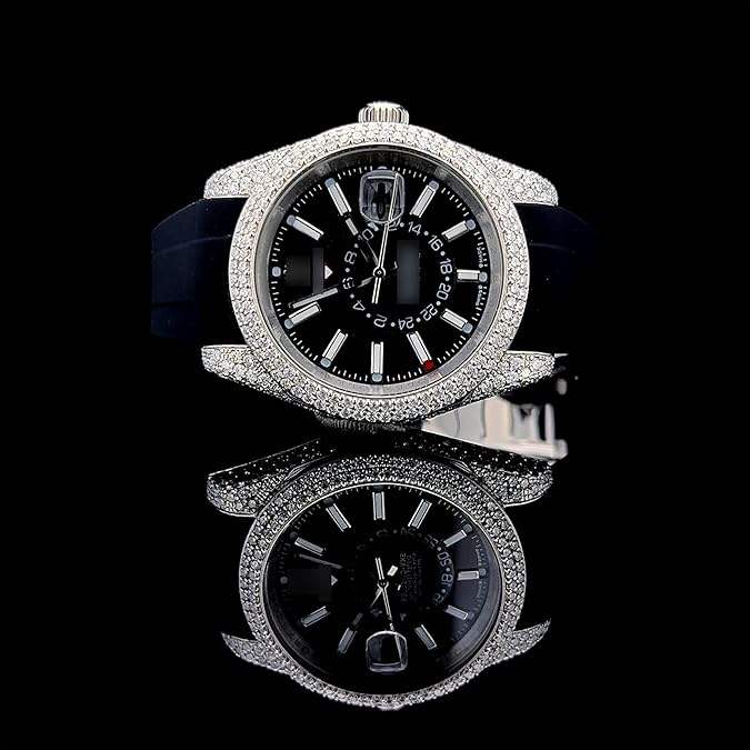VVS Moissanite Business Luxury Watch Men's Stainless Steel Band Automatic Movement Sapphire Crystal Analog Wristwatch with Belt