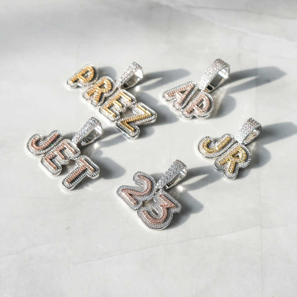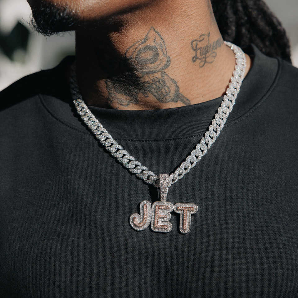 VVS Moissanite Custom Initial Pendant 30mm and 6.5mm Tennis Link Chain 925 Silver Iced Out Hip Hop Nameplate Necklace Bling