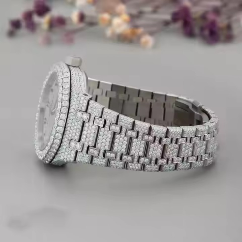VVS Moissanite Diamond Analog Stainless Steel Band Watch Luxury Automatic Wristwatch Quartz Perfect Hip Hop Jewelry for Him