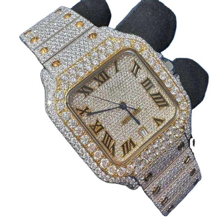VVS Moissanite Diamond Stainless Steel Hip Hop Luxury Quartz Watch Sapphire Glass Leather Strap Pointer Chronograph Business Use