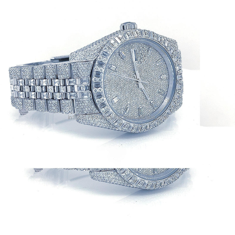 VVS Moissanite Diamond Watch Fully Iced Stainless Steel MIYOTA Analog Fashion Band Glass Window Luxury Unisex Watch 3BAR Auto