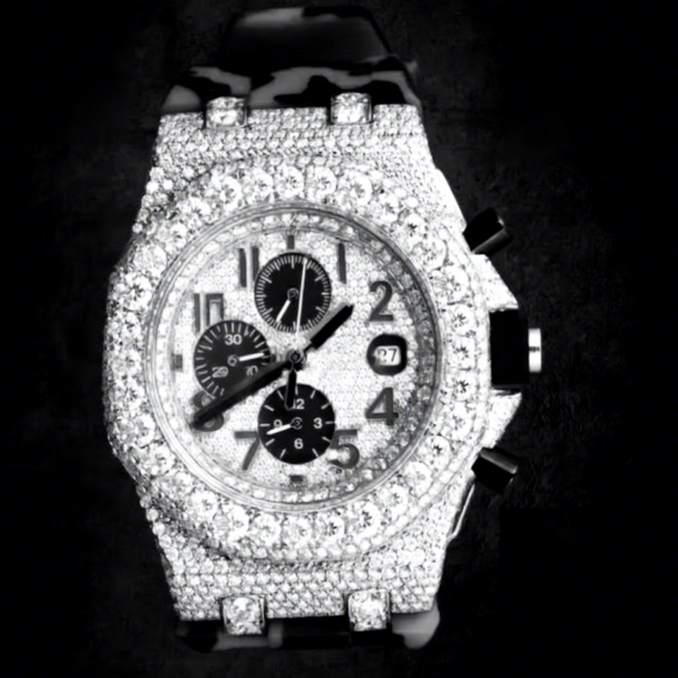 VVS Moissanite Diamond Watch Fully Iced Out Stainless Steel Quartz Movement Glass Dial 10 Bar Water Resistant