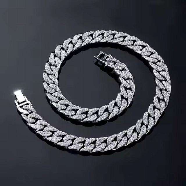 VVS Moissanite Iced Cuban Link Chain 14mm Round Cut Diamond Necklace Chain Hip Hop Silver Miami 925 Sterling Silver