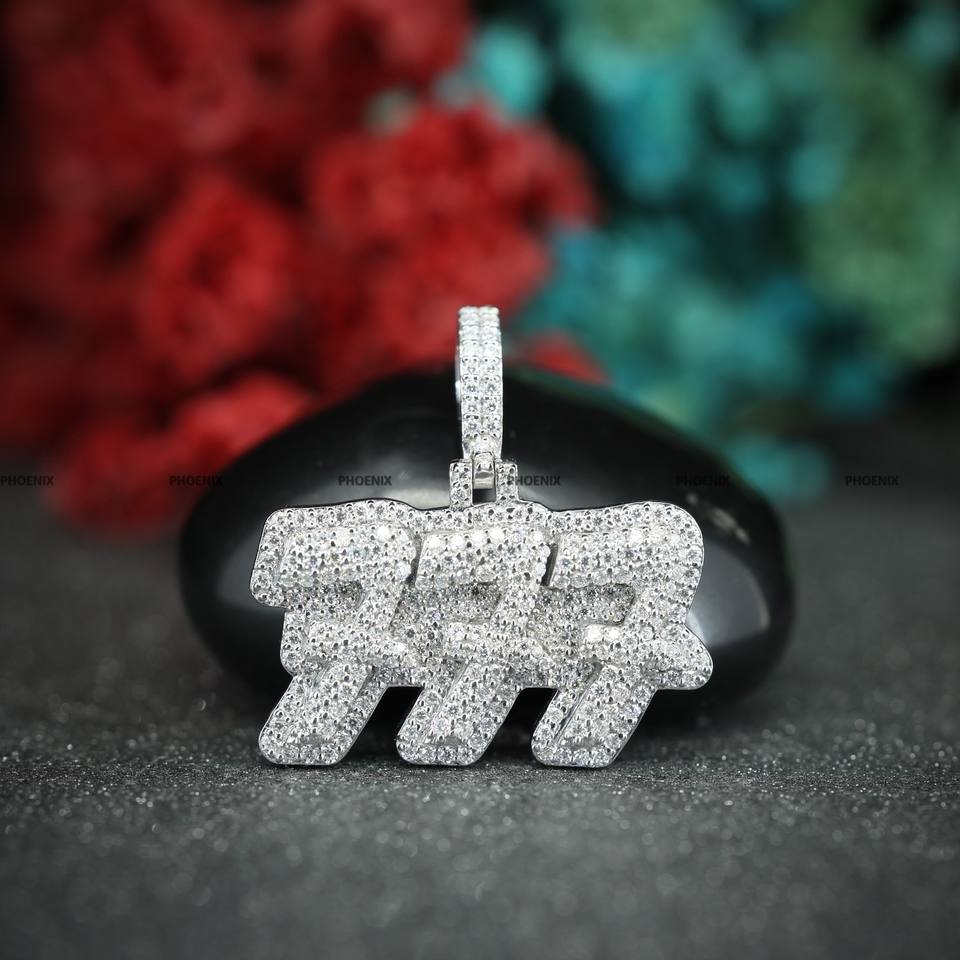 VVS Moissanite Round Cut Diamond Number Pendant 925 Sterling Silver Iced Out Double Layer Wedding Pendant for Men & Women