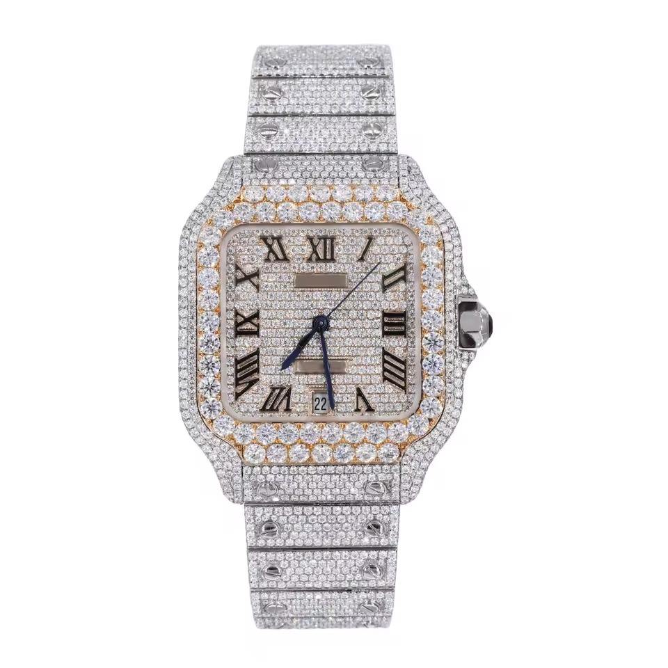 VVS Moissanite Square Quartz Glass Dial Iced Out Luxury Fashion Hip Hop Watch for Men Wedding Party Use India