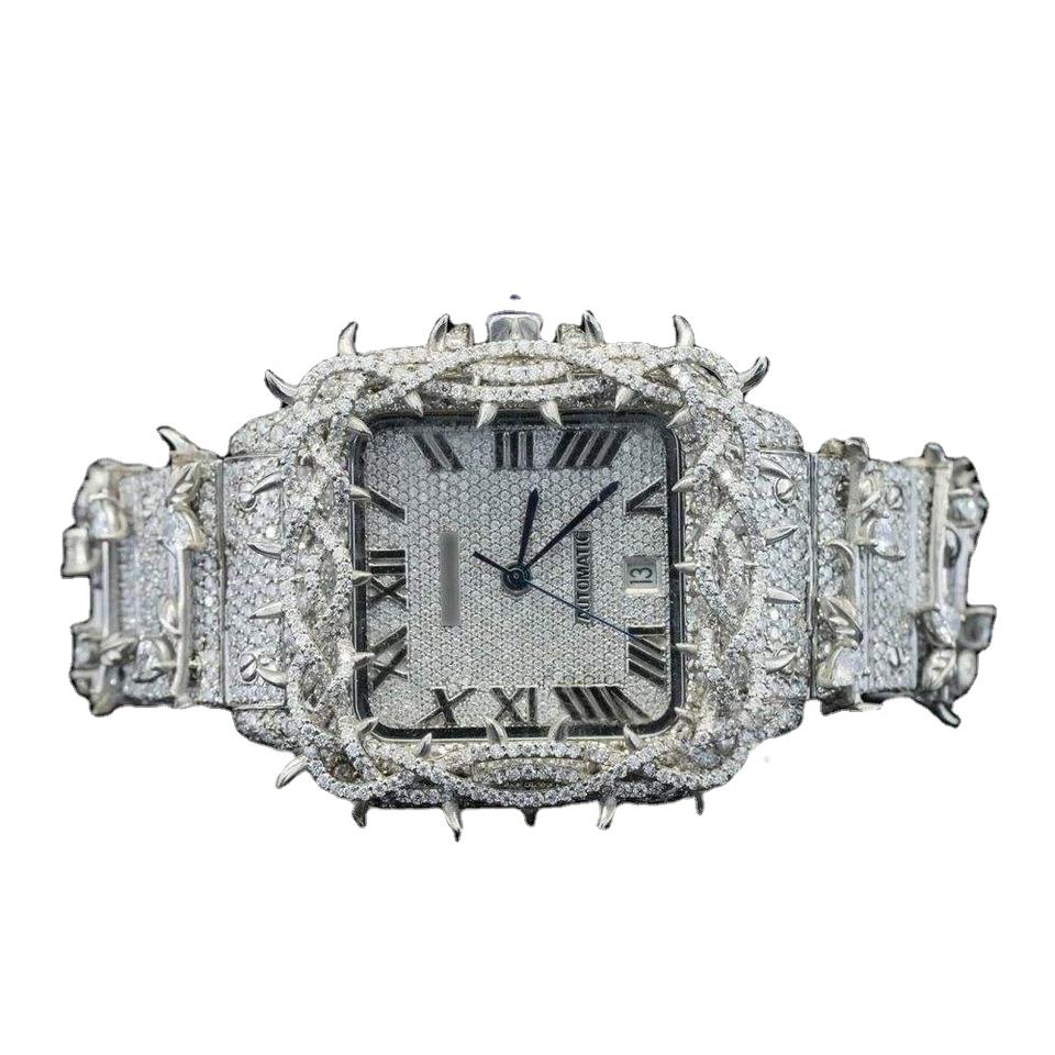 VVS Moissanite Stainless Steel Leather Strap 40mm Business Watches Iced Diamond Tester Thorn High-grade Customized Hip-Hop Watch