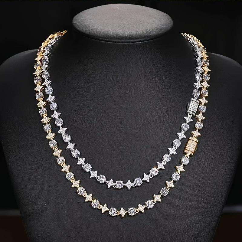 VVS Moissanite diamond Necklace with Icedown D Color S925 Sterling Silver Tennis Chain 3mm 4mm Hip Hop Jewelry Link Chain