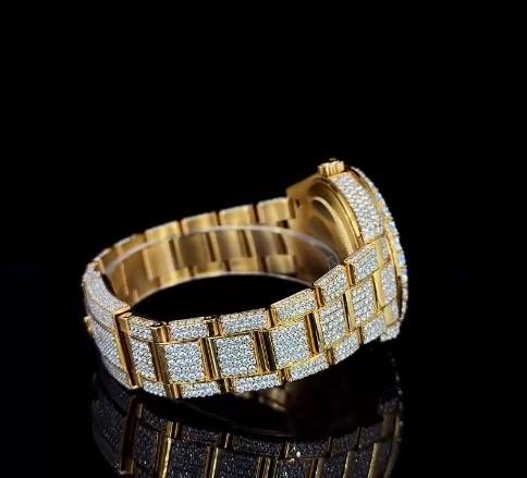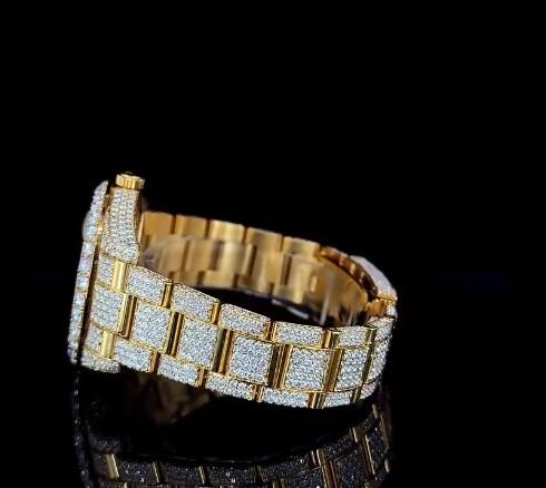 VVS Quality Men's 41mm Glass Crystal Stainless Steel Sport Watch Yellow Gold Plating ETA Quartz Movement Analog Coin Business