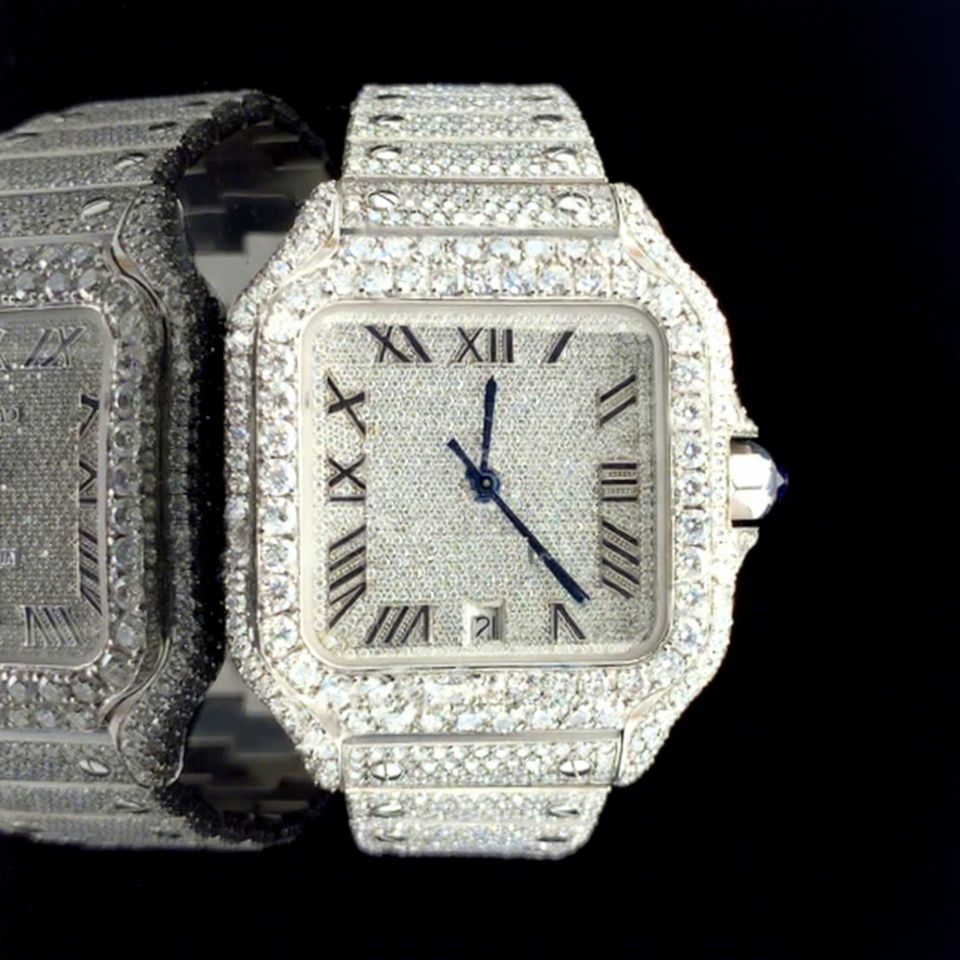 VVS Square Case Stainless Steel Moissanite Mechanical Diver Watch Custom Dial 10 Bar Water Resistant Bracelet Clasp Hip Hop