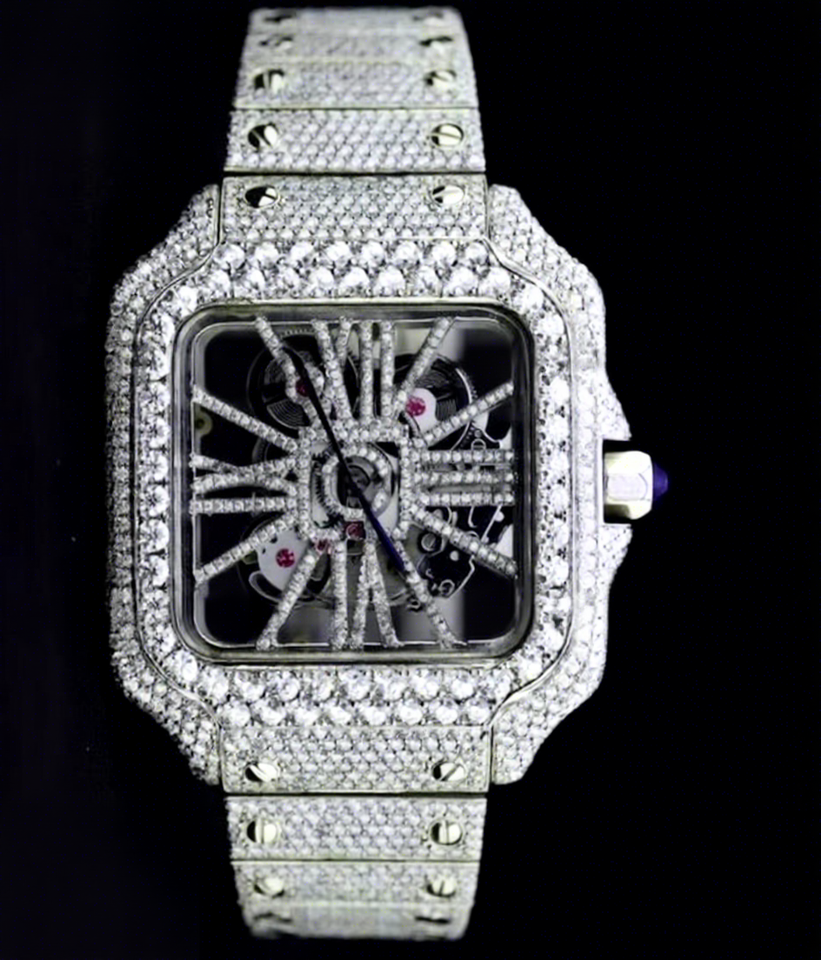 VVS Stainless Steel Square Glass Crystal Analog Display Quartz Movement 5mm Thickness Luxury Antique Hip-Hop Watch Auto Date