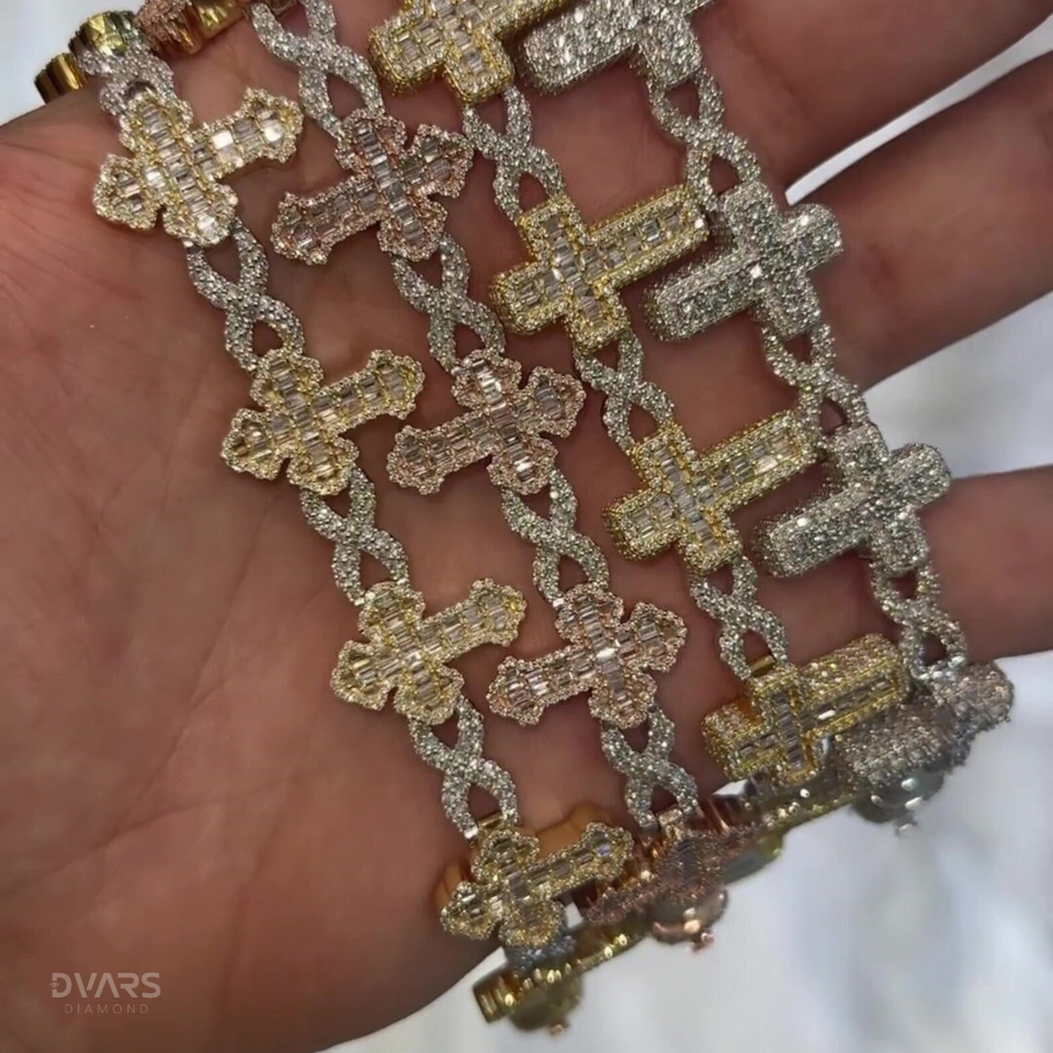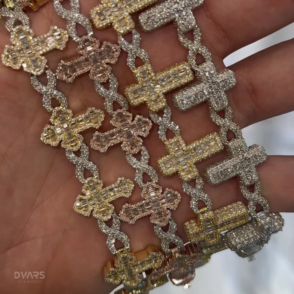 VVS1 Baguette Moissanite Cross Link Pendant 925 Sterling Silver Iced Link Cuban Luxury Rhodium Plated Certified Unisex Bling