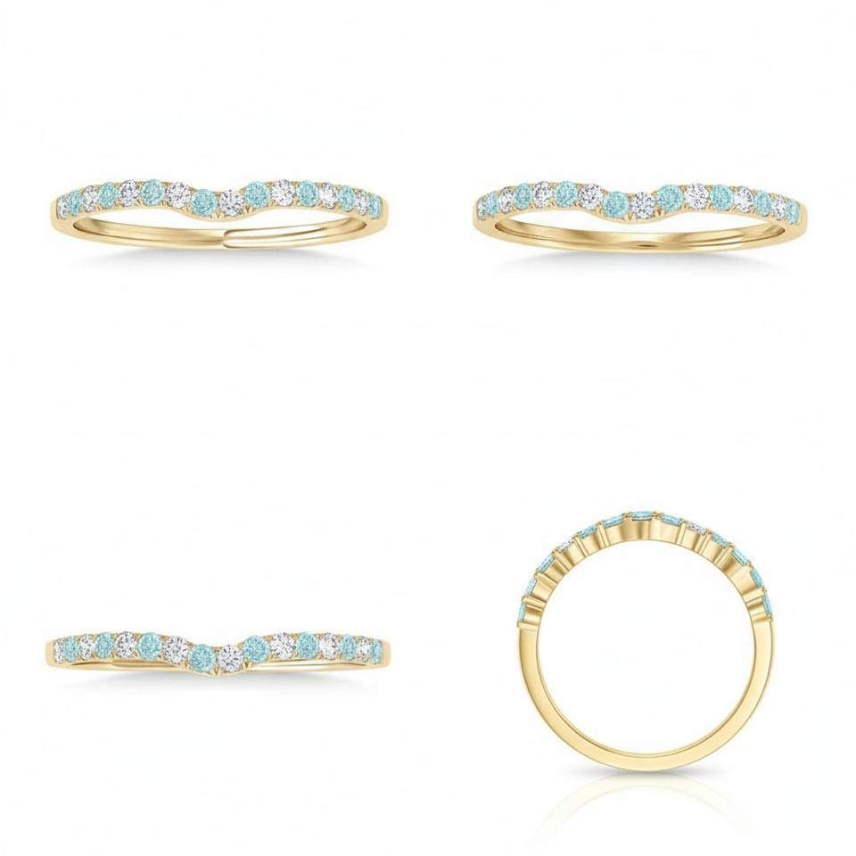 VVS1 Clarity 925 Silver Contoured Diamond Wedding Band with Trendy Design 0.11ct Women Ring for Gifting Propose