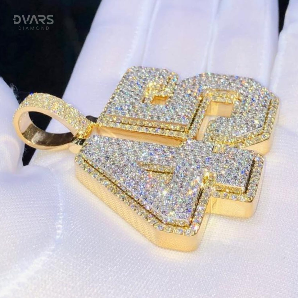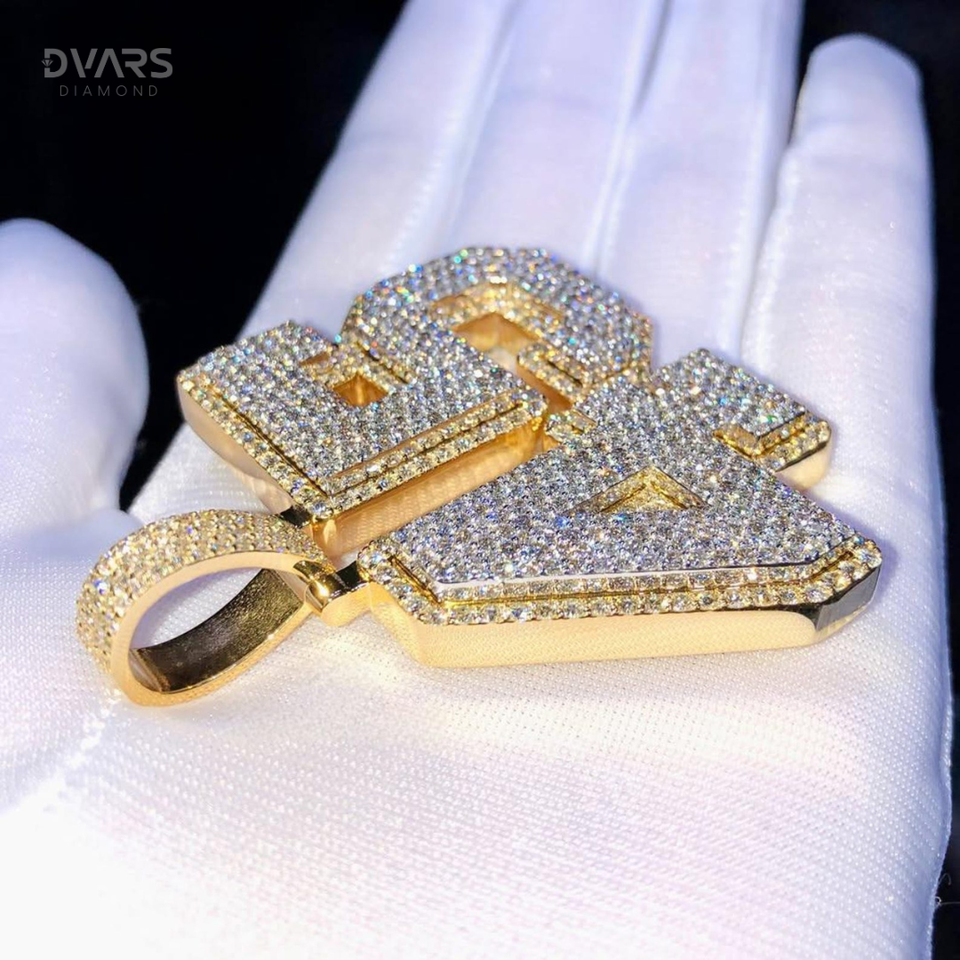 VVS1 Moissanite Custom Number & Letter Initial Logo Pendant Hip Hop Luxury 925 Silver Gold Plated Men's Iced Charm