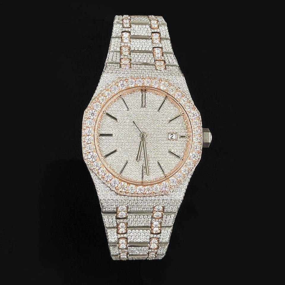 VVS1 Moissanite Diamond Watch Men Watch, 41mm Dial Gold Plated Stainless Steel Men Watch For Gift, Fully Iced Out Watch