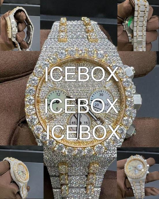 VVS1 Moissanite Iced-Out Stainless Steel Case Watch Glass Dial Bracelet Clasp Two-Tone Hip Hop Timepiece 10 Bar Water Resistant