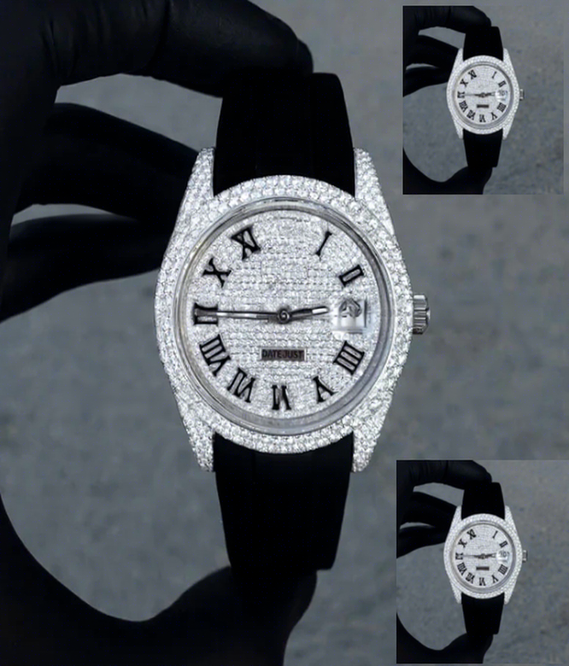 VVS1 Moissanite Iced-Out Watch with Stainless Steel Case Round Dial Glass Crystal 10 Bar Water Resistance