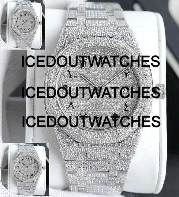 VVS1 Moissanite Round Diamond Iced Out Stainless Steel 10 Bar Water Resistant Mens Luxury Watch with Bracelet Clasp