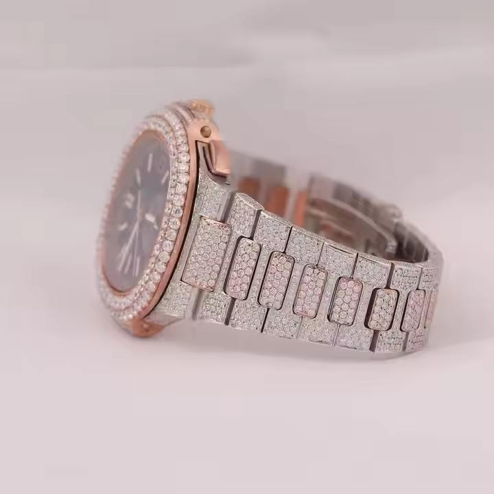 VVS1 Moissanite Yellow Stainless Steel Luxury Watch ETA Quartz Movement 41MM Sapphire Crystal Dial Alloy Case Analog Digital