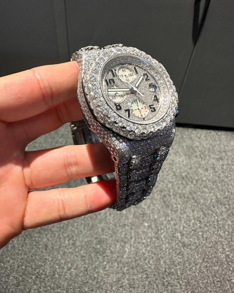 VVS1 White Moissanite Diamond Quartz Movement Alloy Business Glass Band Watch with Full Bust Design Charm Included