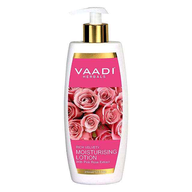 Vaadi Herbals Pink Rose Moisturizing Lotion 350ml | Herbal Hydrating & Nourishing Body Lotion for Soft, Smooth Skin (Wholesale)