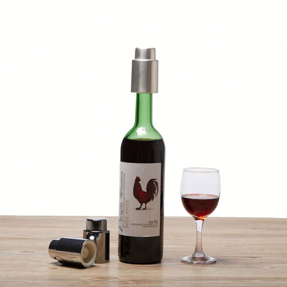 Press-type Stainless Steel Vacuum Wine Bottle Stopper 2-in-1 (L)
