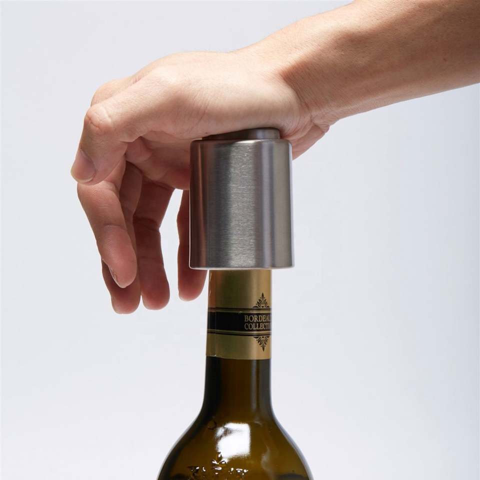 Press-type Stainless Steel Vacuum Wine Bottle Stopper 2-in-1 (L)