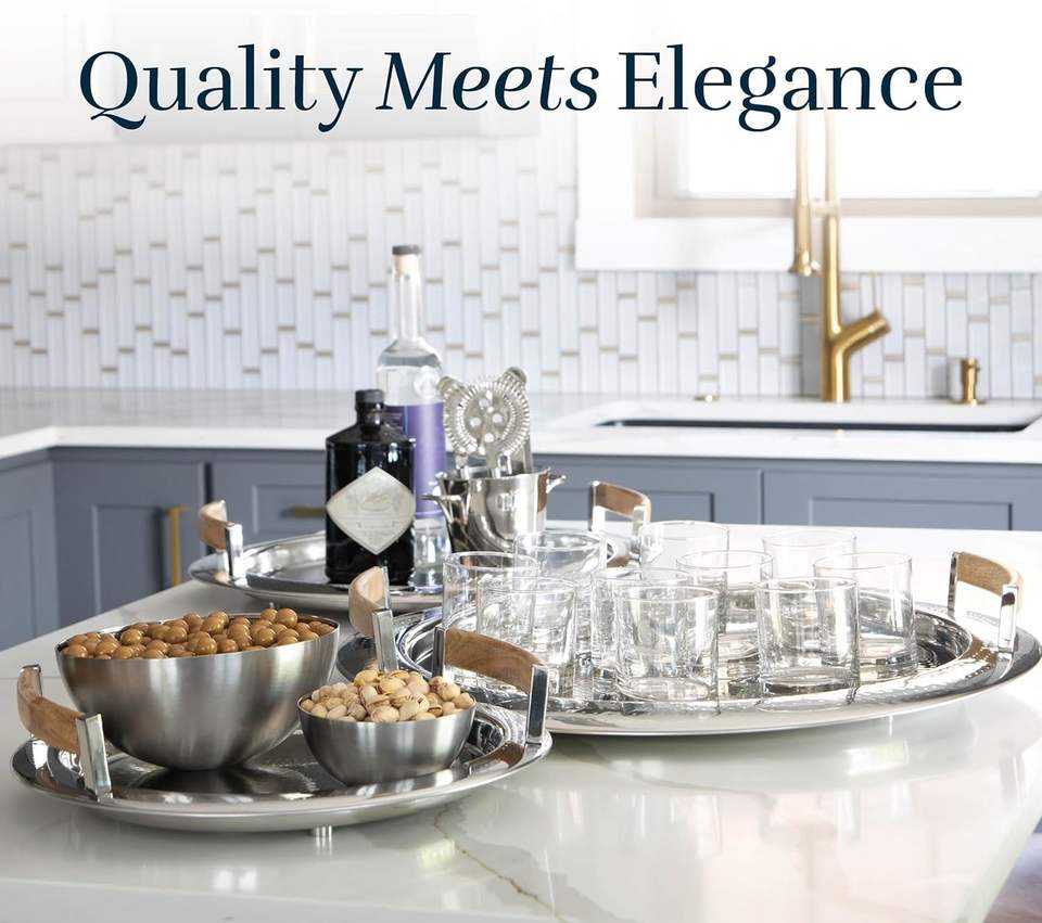 Valencia Beaufort Round Bar Tray with Handle for Living Room Coffee Table Trays for Candles Liquor and Centerpieces set of 3