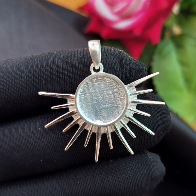 Valentine 925 Sterling Silver Sun Charms Round Shape Bezel Pendant Good For Resin & Ashes Work DIY Locket Keepsake Jewelry