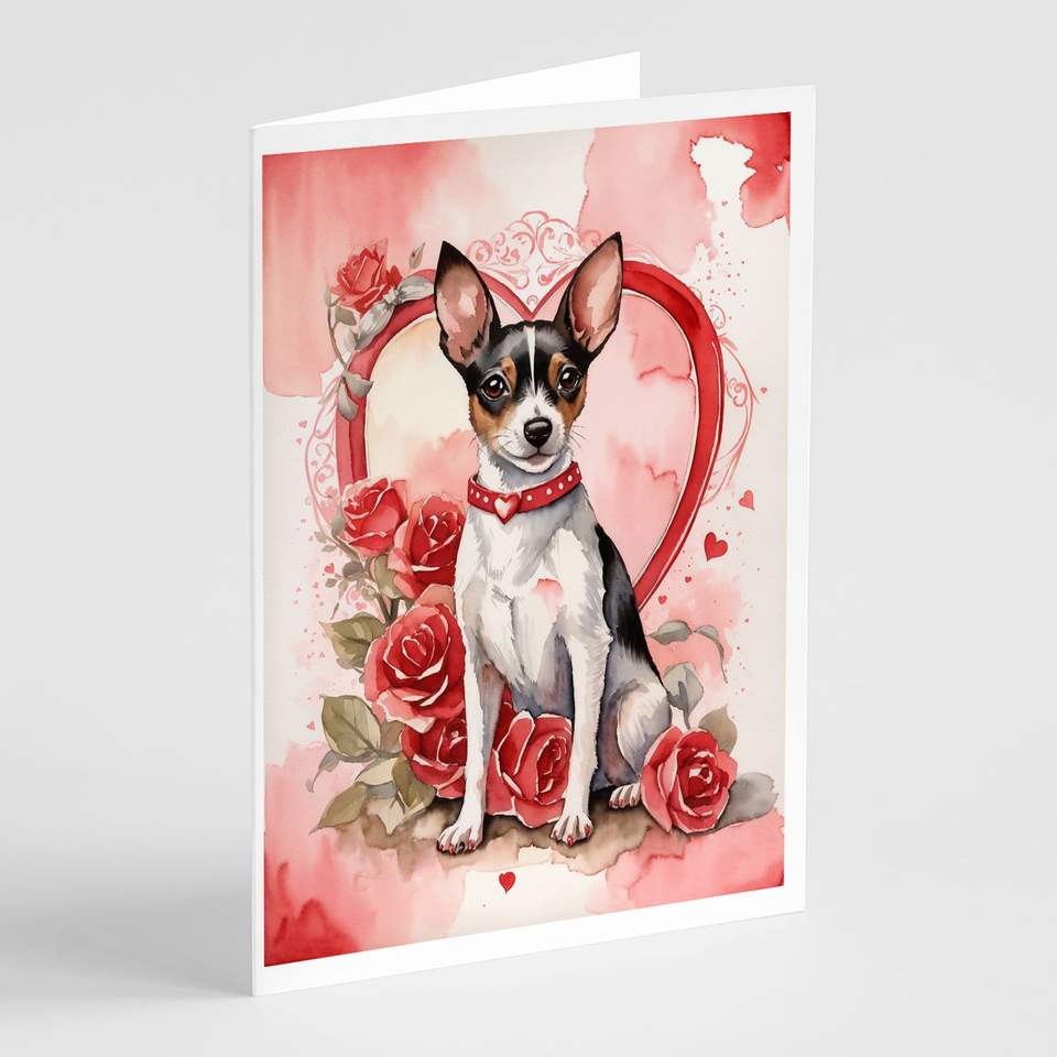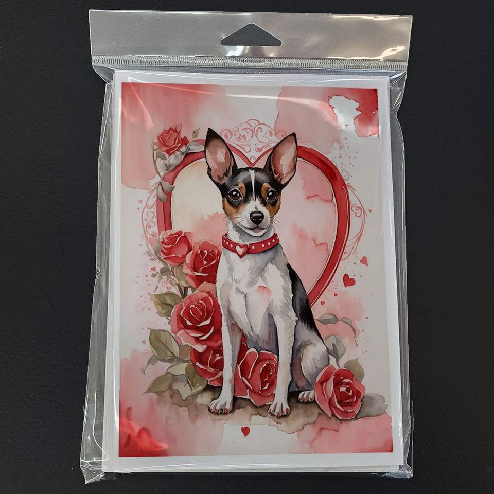 Valentine Roses Greeting Cards for Rat Terrier Lovers Pack of 8 Whimsical A7 Size 5x7 Blank Note Cards with Envelopes