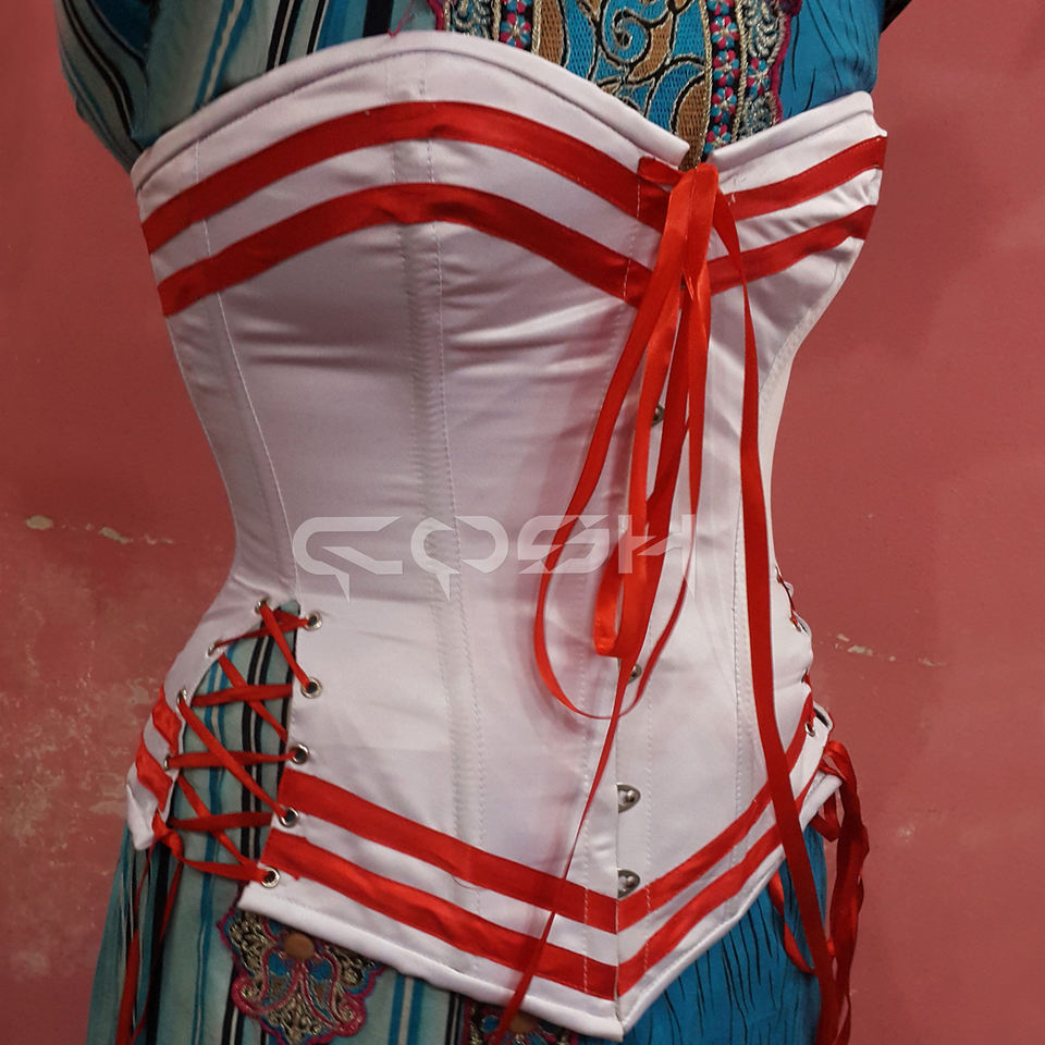 Valentine Wear Red And White Satin Corset Top With Front Hip Lacing
