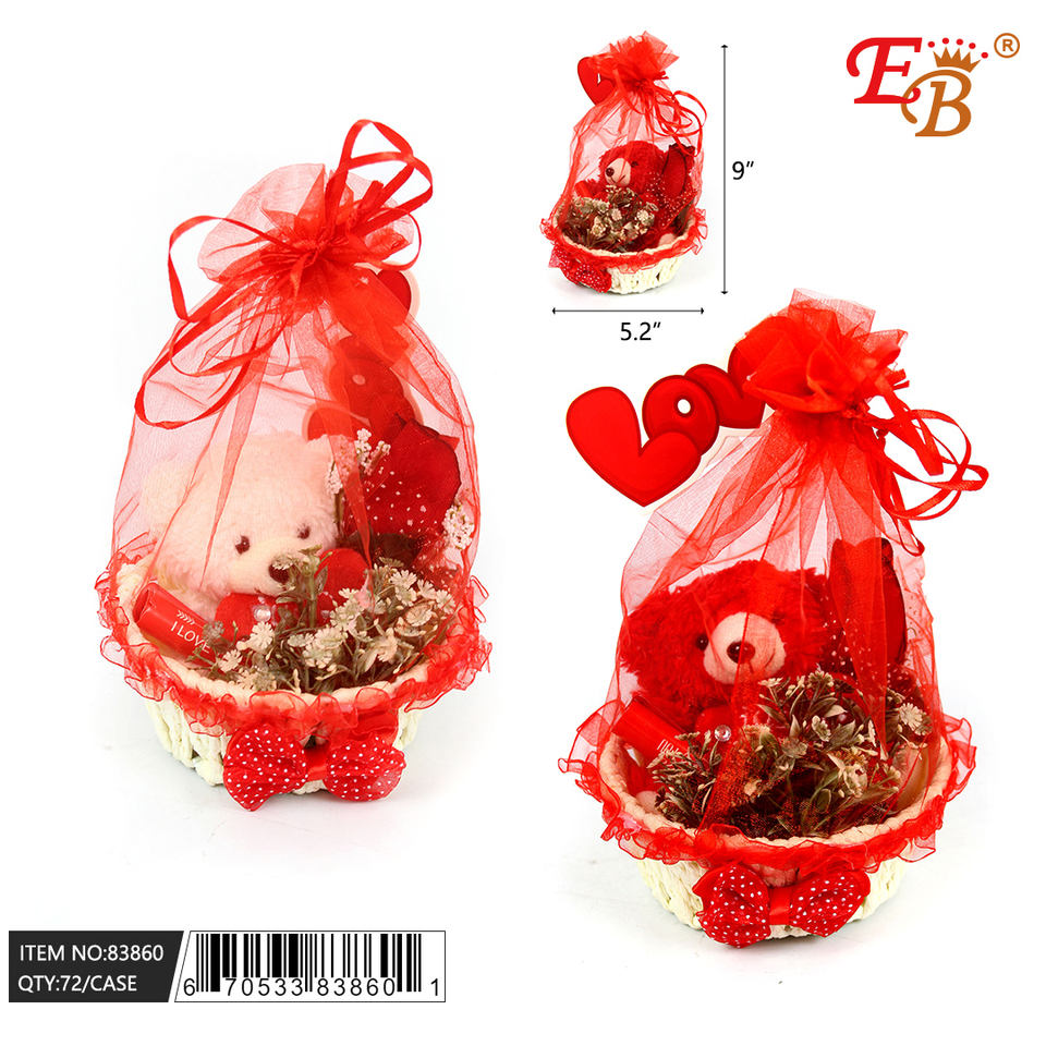 Valentine's Day Bear with Basket Set 5\"X9\" Bear Figurine 72PCS Per Carton Assorted Romantic Supplies
