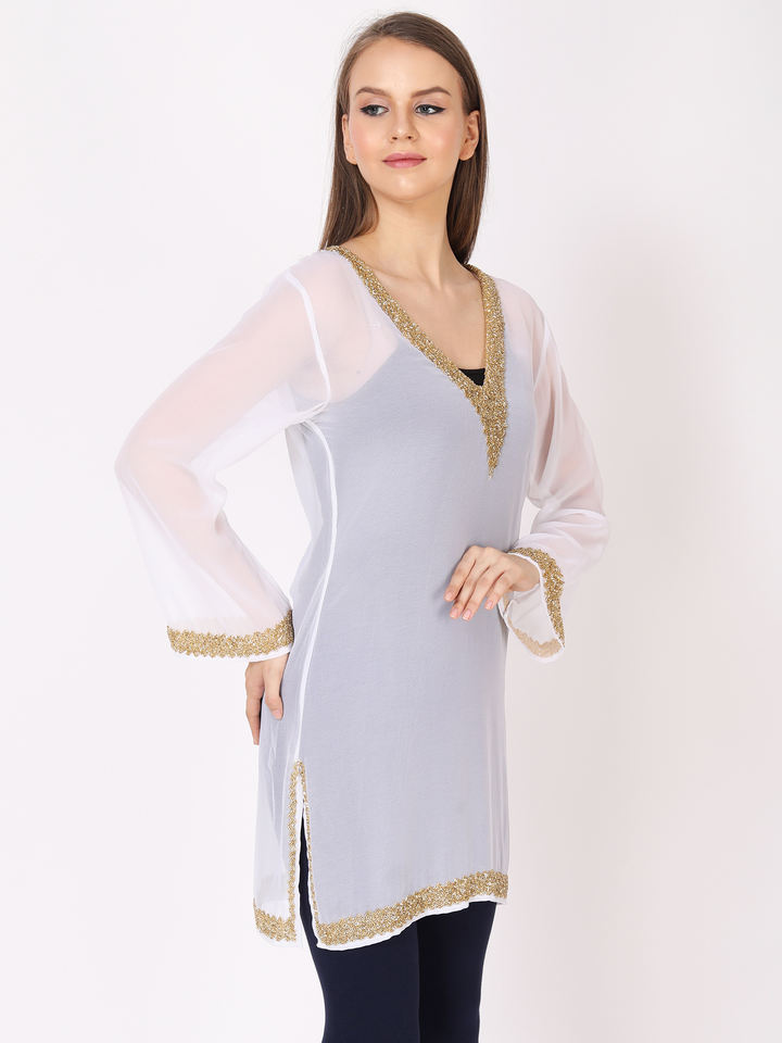 Valentine's Day Celebration Fashion Famous Design Dress Top Blouse Handmade Embroidered Premium Quality Evening Club Party Wear