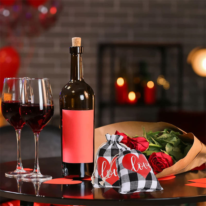 Valentine's Day Cotton Gift Bag 13*18cm Buffalo Plaid Drawstring Pouches for Wedding Bridal Party for Jewelry Love Heart Craft