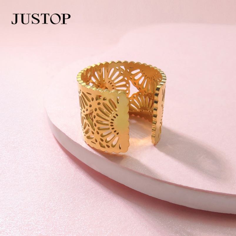 Valentine's Day Couple Gemstone Rings Natural Stone Adjustable Open Ring 18K Gold Plated Stainless Steel Matching Jewelry Gift