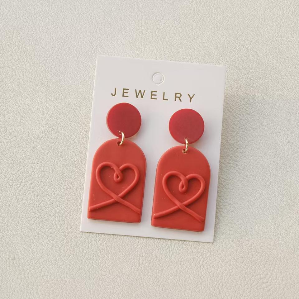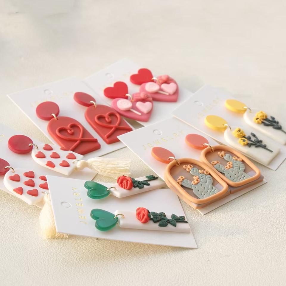 Valentine's Day Fashion Heart Rose Flower Soft Pottery Clay Earrings Polymer Handmade Women Earrings