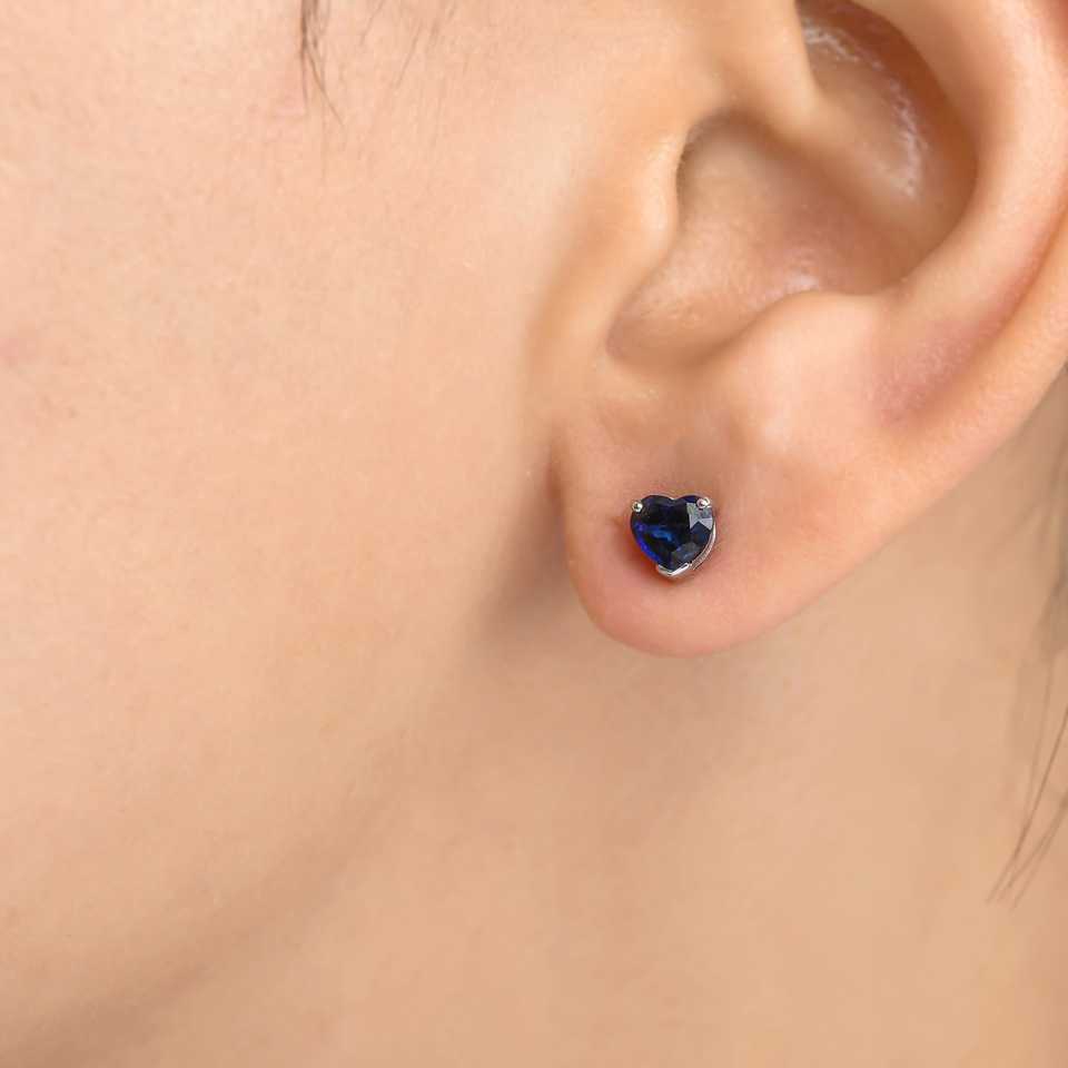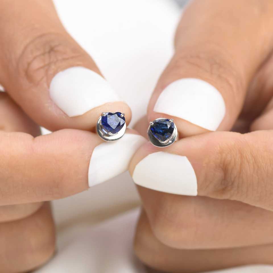 Valentine's Day Special Cute Heart Design Natural Blue Sapphire Birthstone Gemstone 18k Pure Gold Dainty Earrings Diamonds Women