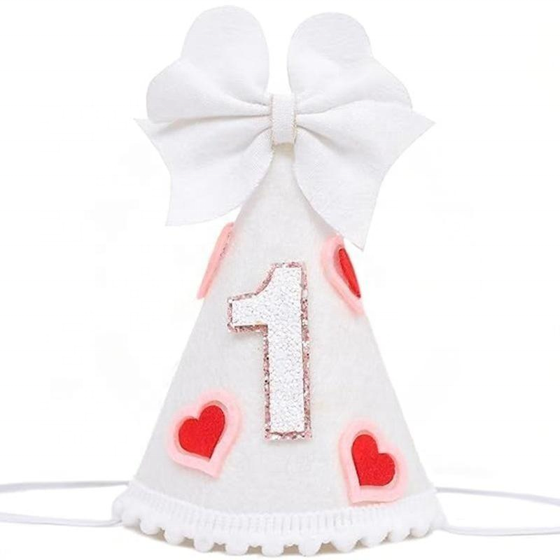 Valentine's Day Themed Cute Birthday Pom-pom Hats Baby Love Children's First Birthday New Year Party Decoration Triangular Hats