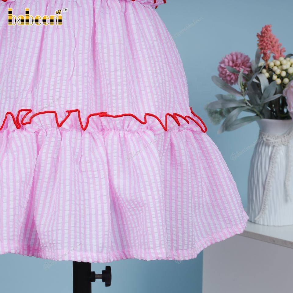 Pale pink medium stripe seersuckerFabric Type